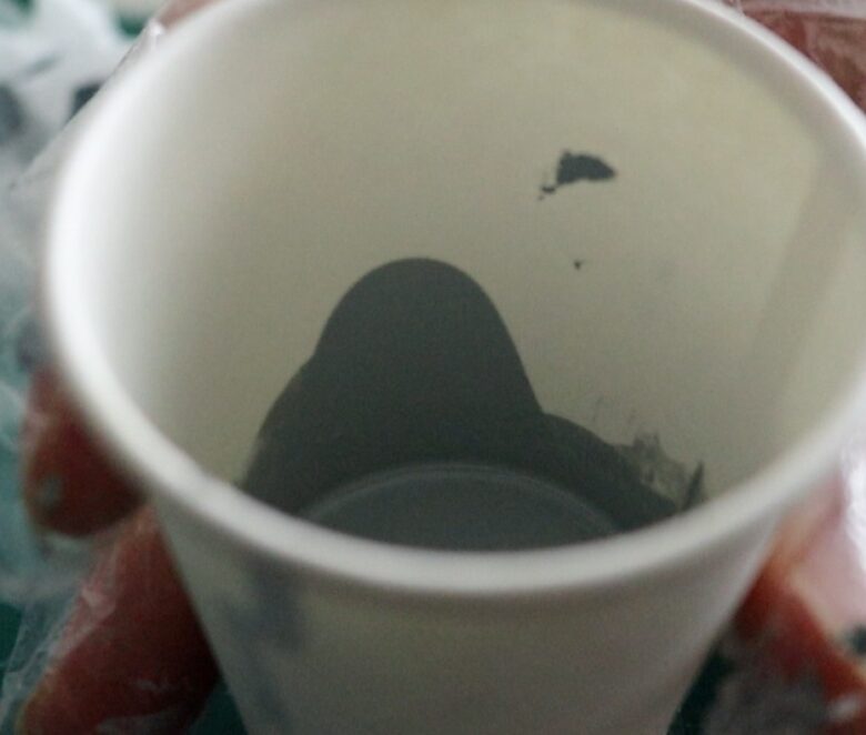 うがいした時、カップの中で塗料が撹拌され「泡」が出来ると思います。