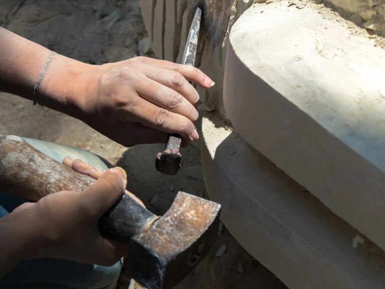 「木」や「石」など固い物質を削りだして、形を作っていく手法となっています。
